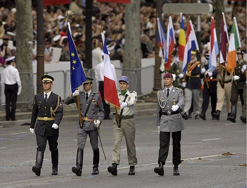 Po pokazach lotniczych w wykonaniu słynnej elitarnej formacji - Patrolu Francji, przemarsz paryską aleją otworzyli, wyróżniający się fantazyjnymi strojami, żołnierze wojsk 13 państw afrykańskich w kolejności alfabetycznej - od Beninu przez Kamerun i Kongo aż do Togo. Za żołnierzami Czarnego Lądu na Polach Elizejskich pojawiły się francuskie formacje sił lądowych, morskich i powietrznych. Pochód zamknęły wojska zmotoryzowane i pokaz śmigłowców.