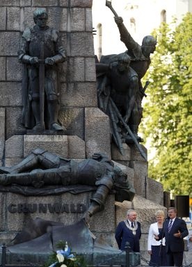 Podczas środowych obchodów 600. rocznicy bitwy pod Grunwaldem w Krakowie Komorowski zaznaczył, że ze szczególnym zadowoleniem odnotowuje, iż właśnie "pod pomnikiem chwały grunwaldzkiej" może spotkać się z prezydent Litwy Dalią Grybauskaite. Podkreślił, że każdy naród potrzebuje "poczucia własnej wielkości, poczucia własnych sukcesów idących przez pokolenia, przez wieki całe".