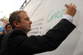"We wszystkich demokratycznych państwach, gdy dochodzi do katastrofy, jest potrzeba uczcić pamięć ważnej osoby, są skromne tablice z imieniem, nazwiskiem i z godłem. Tak powinno być. Nie chciałbym, by była wojna o wielkość tablicy, czy ma być pomnik czy tablica, by znowu była wojna o symbole religijne" - dodał Napieralski.