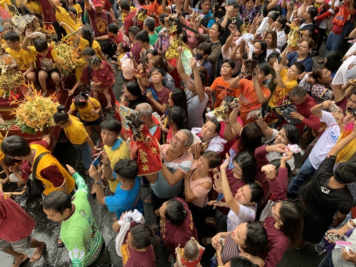 Procesja z figurą trwała kilka godzin ponieważ większość jej uczestników stale się przepychała, aby chociaż przez chwilę dotknąć cudownej figury. Filipińczycy wierzą, że nawet jej muśnięcie uzdrowi ich z chorób. Kult Czarnego Nazarejczyka sięga początków XVII w., kiedy to przywieźli go z Meksyku na Filipiny hiszpańscy misjonarze. Według tradycji wiozący figurę statek spłonął, ona jednak ocalała, chociaż osmalona w pożarze, skąd nazwa Czarny Nazarejczyk