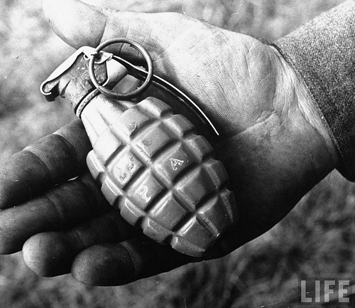 Jak się okazało K. miał przy sobie rozbrojony granat F1. W jego mieszkaniu funkcjonariusze znaleźli też wiatrówkę, elementy broni i magazynki.