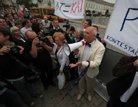 W proteście uczestniczył też - na zaproszenie organizatorów - lider partii Wolność i Praworządność Janusz Korwin-Mikke.