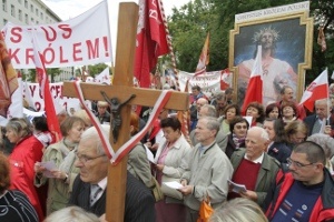 Religijne i patriotyczne śpiewy, prelekcje, modlitwy - ulicami centrum Warszawy przedł w niedzielę Marsz dla Jezusa Chrystusa Króla Polski. Manifestację kończy msza św. w archikatedrze św. Jana. Organizatorem Marszu jest Ruch Suwerenności Narodu Polskiego.