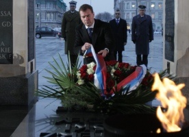 Prezydent Federacji Rosyjskiej Dmitrij Miedwiediew złożył w poniedziałek po południu wieniec przed Grobem Nieznanego Żołnierza w Warszawie - symbolicznym miejscem upamiętniającym poległych w obronie ojczyzny.