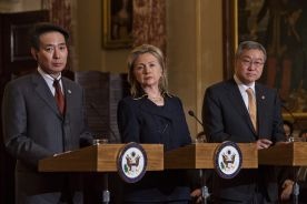 "Korea Północna musi zademonstrować, że poważnie podchodzi do kwestii zakończenia prowokacji i wykazać światu, że jest obecnie gotowa zasiąść do stołu rokowań i wywiązać się z już zaciągniętych zobowiązań" - powiedziała sekretarz stanu USA Hillary Clinton po spotkaniu w Waszyngtonie z ministrami spraw zagranicznych Japonii i Korei Południowej, Seiji Maeharą i Kim Sung Hwanem.