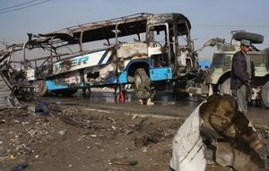 Pięciu żołnierzy poniosło śmierć, a dziewięciu zostało rannych, gdy dwóch zamachowców ubranych w kamizelki z przytwierdzonymi ładunkami wybuchowymi otworzyło ogień do autobusu przewożącego żołnierzy na głównej drodze z Kabulu do Dżalalabadu na wschodzie kraju - podało afgańskie Ministerstwo Obrony.