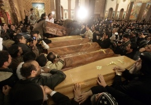 Co najmniej 5 tys. osób wzięło udział w sobotę wieczorem w pogrzebie 21 ofiar śmiertelnych zamachu bombowego przed kościołem koptyjskim w Aleksandrii .