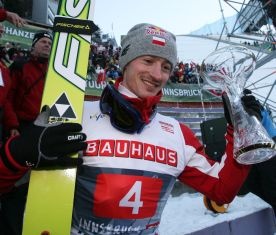 W dwóch z trzech dotychczasowych konkursów Turnieju Czterech Skoczni Małysz stanął na podium (był trzeci w Garmisch-Partenkirchen i drugi w Innsbrucku) i jest trzeci w klasyfikacji generalnej. Do prowadzącego Austriaka Thomasa Morgensterna traci 42,9 pkt, a do drugiego Szwajcara Simona Ammanna - 15,6.