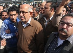 ElBaradei, laureat pokojowego Nobla i były szef Międzynarodowej Agencji Energii Atomowej do Egiptu przybył w czwartek. Zapowiadał, że weźmie udział w protestach, oraz że jest gotów pokierować transformacją polityczną, jeśli zechce tego naród.