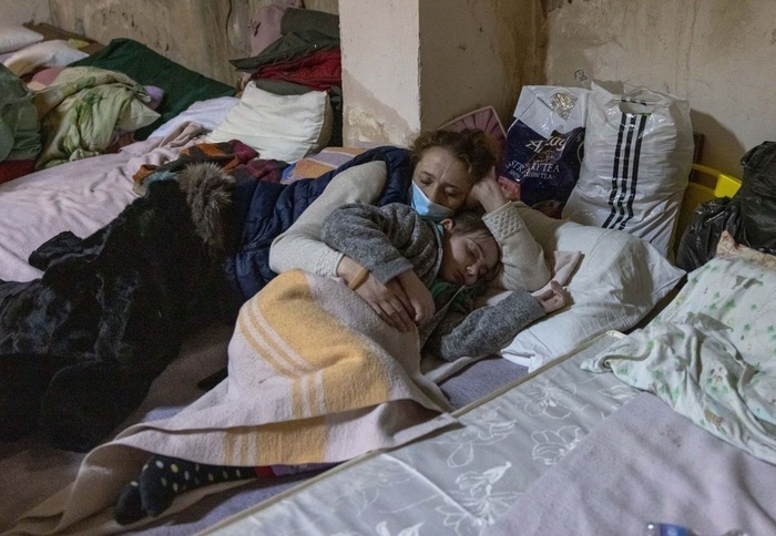 Matka i córeczka ukrywają się w podziemiach Szpitala Dziecięcego Ohmadyt w Kijowie EPA/ROMAN PILIPEY