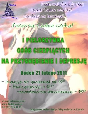 Ojcowie oblaci zapraszają na ten dzień do Kodnia na wspólną modlitwę wszystkich cierpiących na depresję i różne formy przygnębienia, a także tych, których bliscy borykają się z tym problemem.