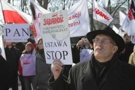 Obecny na demonstracji poseł PiS Artur Górski powiedział PAP, że jest wiele miejsc w ustawie, które "budzą niepokój". "Po przyjęciu ustawy nie będzie gwarancji zachowania praw dla nauczycieli akademickich. Będą mogli w sposób swobodny zostać zwolnieni przez swoich rektorów. Znacznie obniży się także ranga habilitacji, zniechęcając naukowców do awansu naukowego" - mówił. Jak zaznaczył, kontrowersje budzi też zapis, że profesorowie będą musieli pytać o zgodę swoich szefów, jeśli zechcą pracować na innych uczelniach. "Nie zgadzam się również z wprowadzeniem częściowej odpłatności za studia. Może to spowodować, że rektorzy zamiast dbać o poziom nauki, będą zajmować się finansami" - zaznaczył.