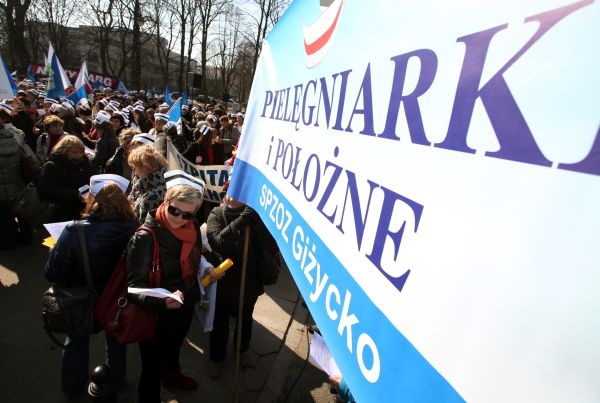 Kilkaset pielęgniarek z Ogólnopolskiego Związku Zawodowego Pielęgniarek i Położnych demonstrowało we wtorek przed Sejmem. Domagały się zakazu zatrudniana pielęgniarek w szpitalach na podstawie kontraktów.