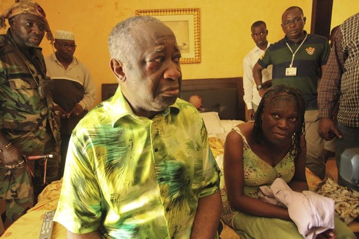 Były prezydent Wybrzeża Kości Słoniowej Laurent Gbagbo z żoną Simone w pokoju w Hotelu Golf w Abidżanie po pojmaniu przez siły Alassane Outtary; 11 kwietnia 2011. EPA/STR