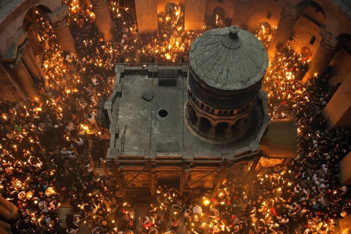 W tym roku chrześcijanie różnych wyznań obchodzą Wielkanoc w tym samym czasie. Dlatego w miejscu domniemanej śmierci i zmartwychwstania Chrystusa wielkosobotnie prawosławne nabożeństwo i towarzyszący mu "cud świętego ognia" wypadły również w dniu katolickiej Wielkiej Soboty.