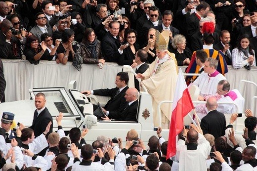 Benedykt XVI pokornie usunął się w cień i zdawał się powrócić do roli kardynała-dziekana, by ukazać wielkość Jana Pawła II - tak watykanista dziennika "Corriere della Sera" Luigi Accattoli podsumował uroczystości beatyfikacyjne polskiego papieża.