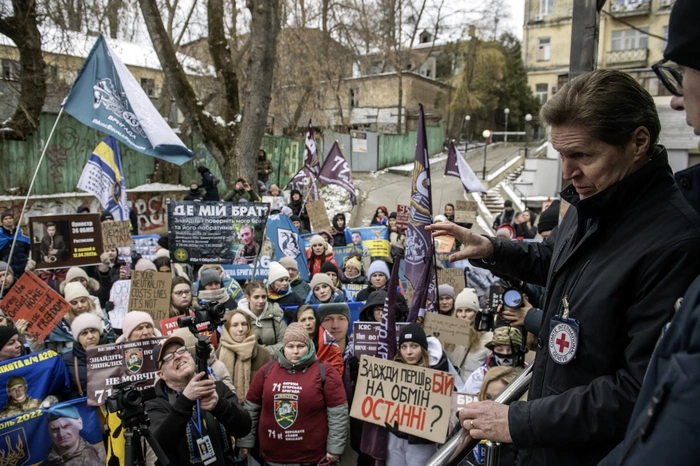 Kobiety zgromadzone przed siedzibą MKCK w stolicy Ukrainy zarzucały organizacji, że nie przejmuje się losem ukraińskich jeńców, nie odwiedza ich w rosyjskich koloniach karnych i nie zapobiega torturom, jakim są tam poddawani.