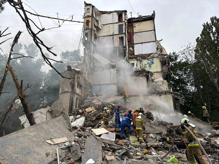 Jeden z rosyjskich pocisków trafił w 9-piętrowy blok mieszkalny, niszcząc część budynku. Pod gruzami mogą być ludzie - napisał Tkaczenko na portalach społecznościowych. (https://t.me/tkachenkotymur/1554)