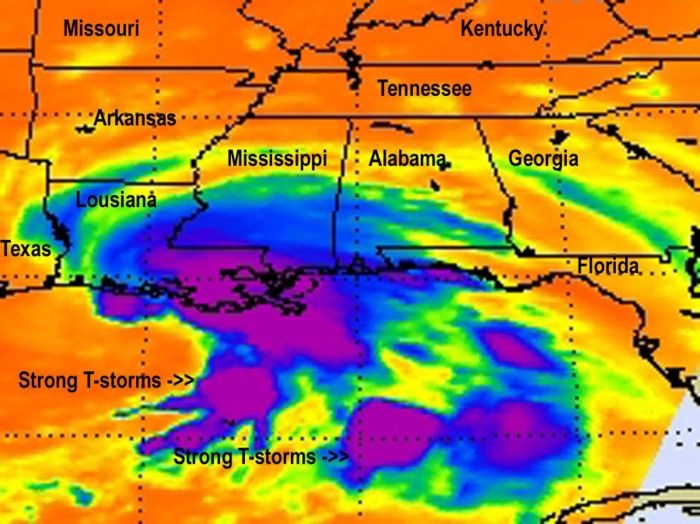 Z prognoz wynika, że Lee już jako depresja tropikalna będzie się przesuwać nad stanem Missisipi w poniedziałek.