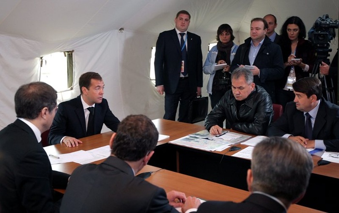 Następnie Miedwiediew spotkał się z przedstawicielami sztabu, który kierował operacją ratunkowo-poszukiwawczą na miejscu katastrofy. Wśród obecnych byli ministrowie ds. sytuacji nadzwyczajnych i transportu, Siergiej Szojgu i Igor Lewitin.