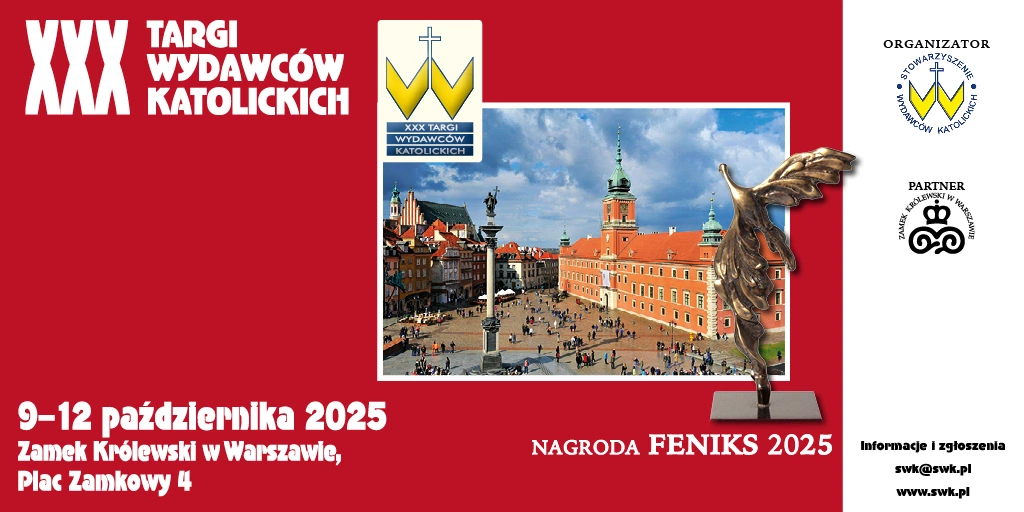 Jak co roku, Stowarzyszenie Wydawców Katolickich zaprasza na wręczenie Nagrody Feniks za rok 2024. To nierozerwalne z Targami wydarzenie będzie miało miejsce podczas uroczystej Gali i koncertu w sobotę 11 października w Katedrze Polowej Wojska Polskiego (Warszawa, ul. Długa 13/15).