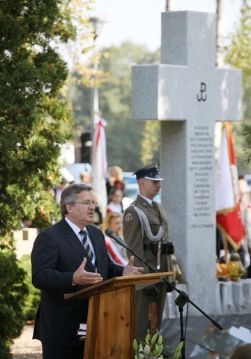 Prezydent zaznaczył kończąc przemówienie, że mimo upływu czasu trzeba się co roku spotykać na tym cmentarzu, mierząc "polską wolność także tymi żołnierskimi krzyżami". Komorowski zażartował, że "musi już uciekać" na uroczystości dożynkowe do Spały, a kwiaty w jego imieniu podczas uroczystości złoży jego współpracownik i wieloletni asystent - Michał Szweycer.