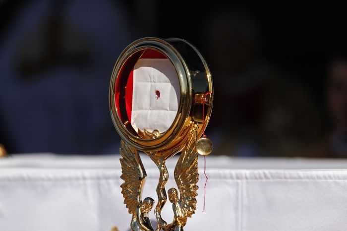 Zabezpieczona w kustodii Cząstka Ciała Pańskiego w kolorze krwi, zintegrowana jest z korporałem, w którym była przechowywana, umieszczona została nad tabernakulum, w specjalnie przygotowanej, zabezpieczonej niszy. Nad nią wystawiony został w monstrancji Najświętszy Sakrament.