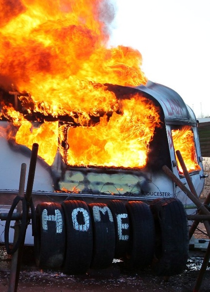 W celu pomieszania szyków policji podpalono przyczepę kempingową. Kilka osób odniosło obrażenia.