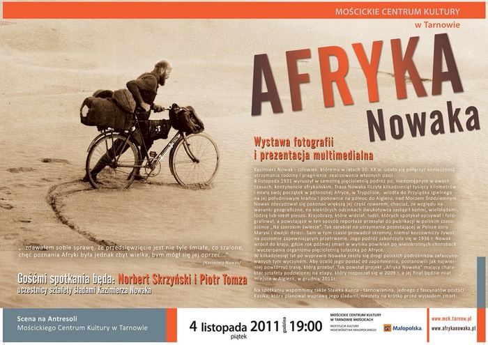 W dzień podwójnie nowakowej rocznicy czyli 4.listopada 2011 o godz. 19.00 w Centrum Sztuki Mościce w Tarnowie otwarta zostanie wielka wystawa zdjęć Afryki z czasów Nowaka i Afryki Nowaka.